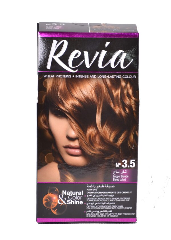 REVIA PERMANENT COLOR CREAM (3.5 COPPER BLONDE),A permanent hair color cream that perfectly gives full gray hair coverage with deep, brilliant, and long-lasting hair color. It has a cosmetic formula that contains a complex of active ingredients, which protect the colour of your hair and care for its condition: